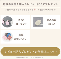 (例)弊社で運営している「prefer 楽天市場」 にて掲載している「レビュー記入プレゼント」の画像