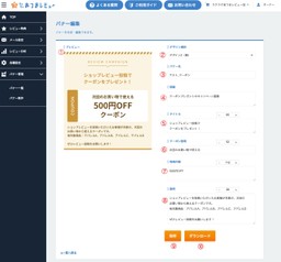 バナー編集画面にて、クーポンキャンペーンの訴求に特化した画像を作成できます。