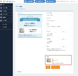 バナー編集画面にて、プレゼント品紹介用の画像を作成できます。
