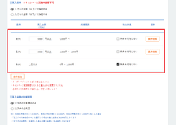 タブ切り替えで、各条件ごとに特典を設定できます。。