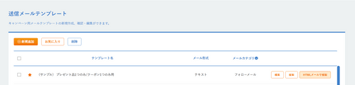 「メール設定>送信メールテンプレート」画面にて、これまでご利用いただいていたメールテンプレートをHTML形式で複製することが可能です。