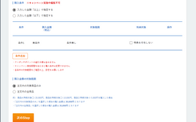 「購入金額が〇〇円以上(または以下)であればこの特典を付与する」という条件の区切りを設定していきます。