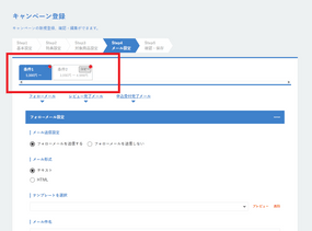 step4メール設定 にて、購入条件ごとにタブを切り替えてメールの内容を設定してください。